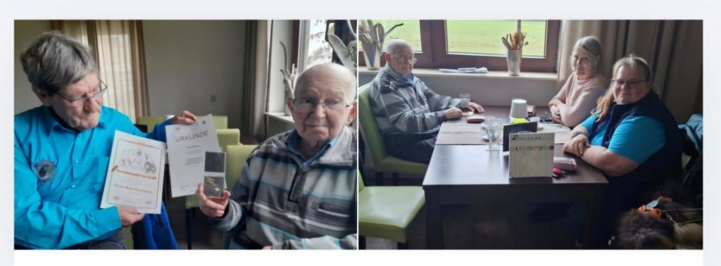 Am 19.2.2026 war es endlich so weit. Nachdem wir schon 2 vorgesehene Termine verschieben mussten fuhren wir am 19.02.2026 nach Hockenheim und konnten unserem langjährigen Mitglied und Spezialzuchtrichter Rudi Hardtmann zwei Ehrungen überreichen:
